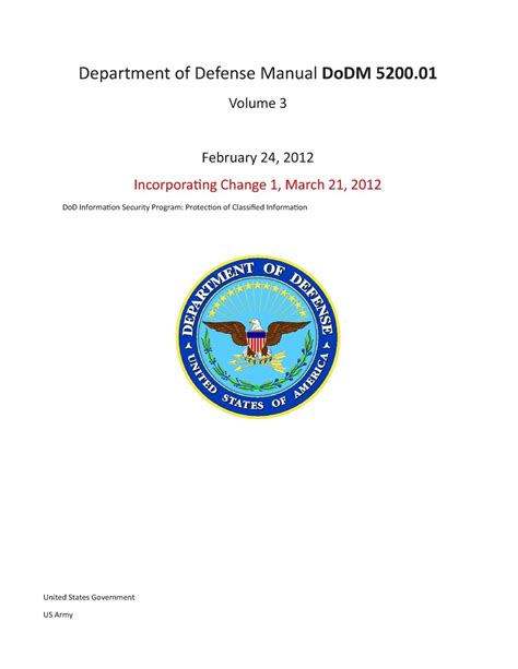 Dod Manual 5200.01 Volume 3. 3, dod information security program: This manual is composed of several volumes, each containing its own purpose.